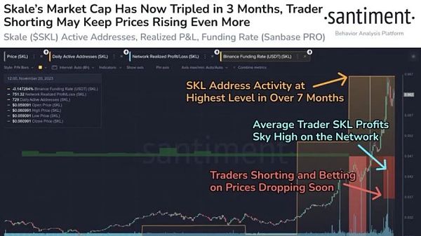 Skale Network是一个区块链项目,其原生代币SKL在最近几个月内经历了显著的涨势。根据链上分析公司Santiment的数据,清算空头对SKL的上涨起到了推动作用,这可能进一步推动SKL的上升趋势。