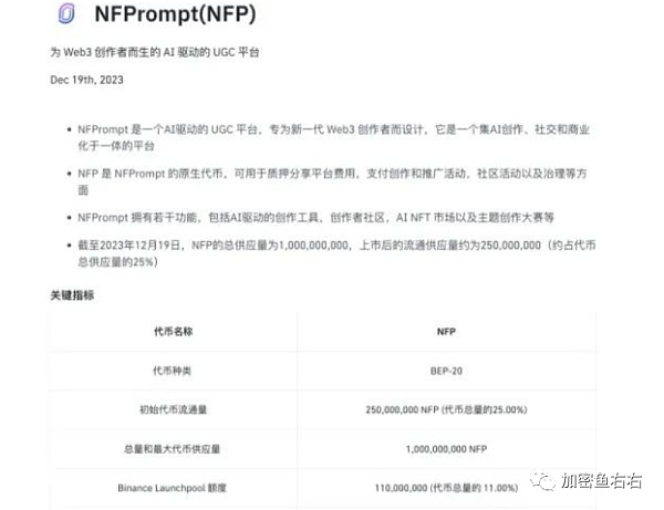 随着币安新币挖矿的推出,NFP有望很快迎来TGE。然而,NFPrompt的官方文件目前并没有透露太多关于TGE代币经济模型的细节。临时可识别信息包括: