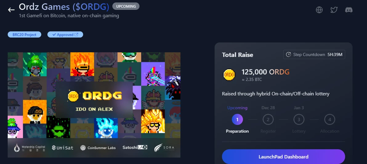 另外,值得关注的是 ALEX 上的 Launchpad 服务。同样是当下爆火的板块,ALEX 也有涉及。最新一期的 Launchpad 为老 OG 项目重新发售,有一定的社区基础,值得重点关注。
