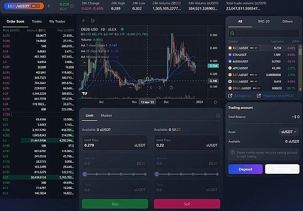 目前 ALEX 的主网版本功能包括 Swap、借贷、质押、收益挖矿以及 Launchpad。此外,在 BRC-20 热度爆棚的当下,ALEX 还推出了 BRC-20 的订单簿交易所。