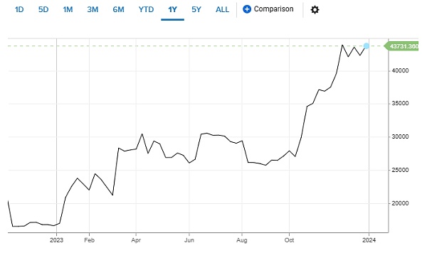 比特币在2023年实现了大幅上涨,该顶级加密货币全年上涨了约152%。