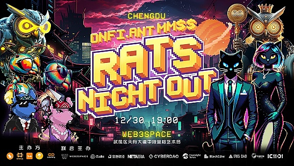 最近加密行业热点不断,但毫无疑问,铭文是最近一两个月最火的赛道,一直处于备受关注的 C 位。《RATS/MMSS/.ant /STST/ONFI—Night Out》主题活动于2023年12月30日在 WEB3SPACE 引爆,汇聚了众多Web3铭文赛道的热衷者,共同见证Web3时代铭文的未来。
