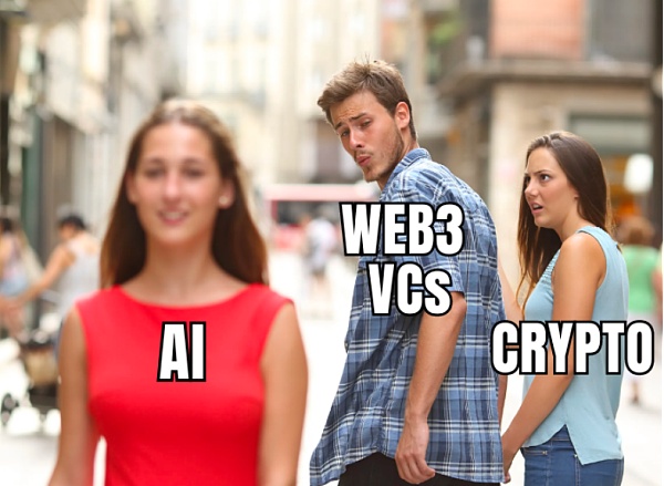 随着乐观情绪的增长,怀疑也随之而来。潜在的后果开始给监管机构敲响警钟。人工智能的迅速崛起和模糊的监管框架,与处于早期的加密货币领域相呼应。两个行业似乎就像两条平行线一样,去中心化的 Web3 与人工智能潜在的中心化力量形成互补。在今年的第一季度里,几乎所有 Web3 VC 都在讨论人工智能的变革潜力(有一次,我都在疑惑自己参加的活动主题到底是 Web3 还是 AI)。在这一年中,我们还看到一些风险投资机构转向 AI 或将其纳入其投资任务。