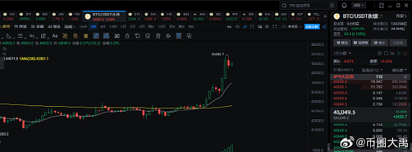 2024.1.2比特币未来或许会在某一个时刻,ETF正式通过,世界上最大体量资金熊入,然后单天上涨几倍。对未来几个月行情,我看好的方向几个:OP我认为算是被动发币,有点被逼的意思,没有把空投的作用真正发挥出来。arb算是目前为止最优质的空投示范了,op之后已经是2.0阶段了,1.0的特点在于资金和时间的投入都少,2.0阶段资金投入不大,但是时间投入大了很多100倍项目中,只有1.7% 是在牛市晚期(2021 年)创建。所以从这个逻辑来看,24年的新项目,大家要多多关注同时炒新币是因为新币是价格低,上涨空间大。暴富机会多。不过也容易来的快去的快市场已表现出牛市特征,建议大家多跟新韭菜交流。牛市特征中,新韭菜盈利能力,远远强过老韭菜。这个阶段很多新韭菜,都在炒新币。反观很多老韭菜不怎么关注新币,因为流动性比较差。老的币,除了最初阶段,因为有主线比较好判断。中期表现都不如新韭菜的币。这个都知道吧~,你可以问问身边经历过3次以上的老韭菜,应该都知道。其实牛市选币的思路很简单:要么炒小市值炒新币,要么勇于上龙头。一旦上车不要轻易下车,尽量做放量突破的单子。为什么说牛市老韭菜干不过新韭菜,原因就在于老韭菜被割怕了,胆子太小,不敢上最猛的车。技术面日线:目标48000不变,今早这笔合约拉到45487,预计在这个位置还要盘整一段,再向上冲刺四小时线:如之前所述触及四小时级别的支撑位置41500一开始反弹,最低是插到41283,触及0轴后开启反弹15分钟线:有笔回调,回调就是上车的机会操作计划:42300多单继续持有41500补仓均价为41800的多单继续持有