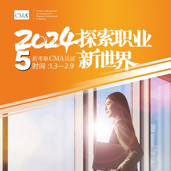 IMA管理会计师协会决定将于2024年1月3日至2月9日,对CMA新在职考生与新学生考生进行优惠活动,考生年费5折,CMA认证考试准入费5折,免除首次注册费,在职考生共节省297.5美金,学生考生共节省137美金。折扣代码为: CHNY24SOC