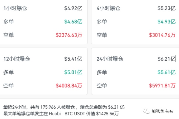 1月3日晚间,比特币又一次出现惊魂大跳水,盘中一度跌超10%,跌破41000美元,以太坊、艾达币等加密货币也跟随跳水。加密货币市场瞬间“血流成河”,Coinglass数据显示,1个小时内,加密货币市场全网合约爆仓4.92亿美元。24小时内,爆仓人数超过17万人,爆仓金额超过6亿美元。