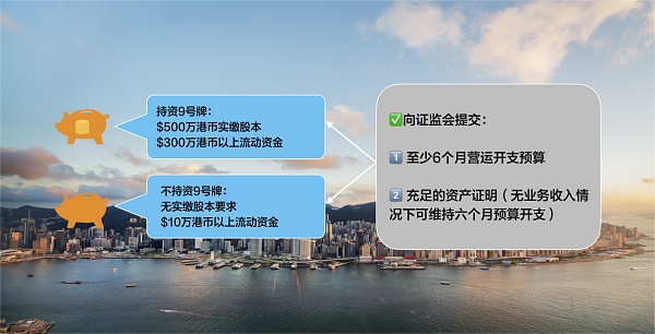 (1)不持有客户资产的9号牌:无实缴资本要求,但须保持10万港币以上的流动资金。