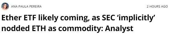 他继续解释,如果美国证监会将以太币视为证券,这将与商品期货交易委员会(CFTC)的立场产生矛盾。这也是他认为以太币现货ETF将于今年获得批准的原因。