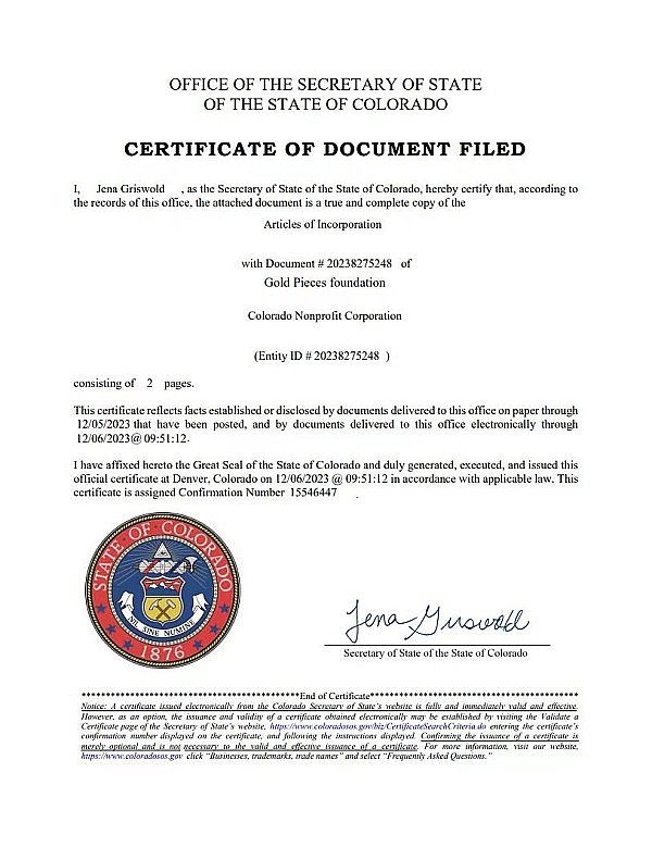 更加令人振奋的是,Mars符文由美国Gold Pieces foundation公司背书,其注册信息清晰明了:成立于2023年12月6日,位于2000S Colorado Blvd, Denver, CO 80222, US。这家非盈利公司的年检日期也正面回答了所有怀疑:科罗拉多州非盈利公司将会在每年审计。这一切信息都可以在https://www.coloradosos.gov/biz/BusinessEntityCriteriaExt.d查询到。