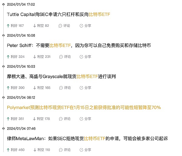 自 2023年 11月 17日上轮 #BTC 现货 #ETF 审核窗口关闭之后,绝大部分加密圈用户或机构都在市场情绪和相关消息的烘托下,认为 #SEC 会在 2024年 1月上旬通过第一批比特币现货 ETF的申请,致使比特币价格一路高涨,甚至突破 45,000美元大关。