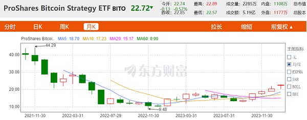 2021 年 10 月,ProShares 旗下比特币期货 ETF 获 SEC 批准并上市,第一天成交额接近10 亿美元。