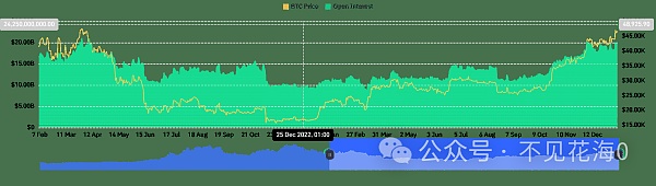附图显示,自 2023 年 10 月左右以来,未平仓合约稳步攀升。