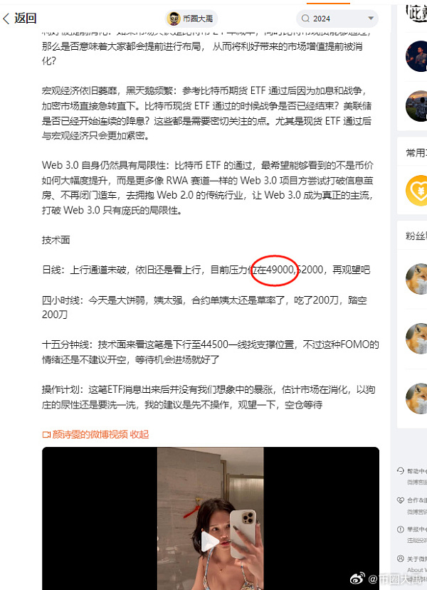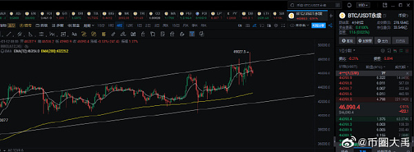 2024.1.12比特币ETF第一个交易日,高开低走,从此对于专业交易者,又多了一个盯盘的市场,那就是美股动态技术面日线:昨日说的两个压力49000,52000位置,第一个位置接到了,极限接针,最低插到45600一线,这笔预计会有一波阴跌,磨个周末两天时间,再向上吧四小时线:这笔MACD在中轨不太好操作,建议观望为主十五分钟线:44500一线支撑位依旧有效