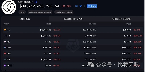 灰度目前的持仓数据。来源:Arkham