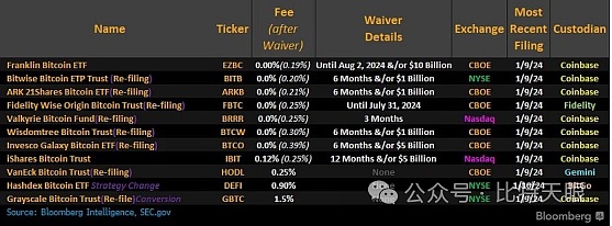 还有一个更可怕的论点,涉及到所有比特币现货ETF的费率问题。目前,根据彭博分析师的统计,灰度的GBTC是管理费最高的ETF: