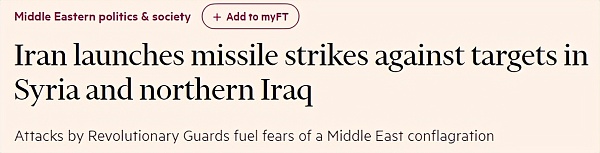 英国《金融时报》报道称,伊朗革命卫队向叙利亚和伊拉克北部的目标发射了一系列弹道导弹,其中包括精锐部队所称的以色列情报中心,与以色列的敌对行动大幅升级。