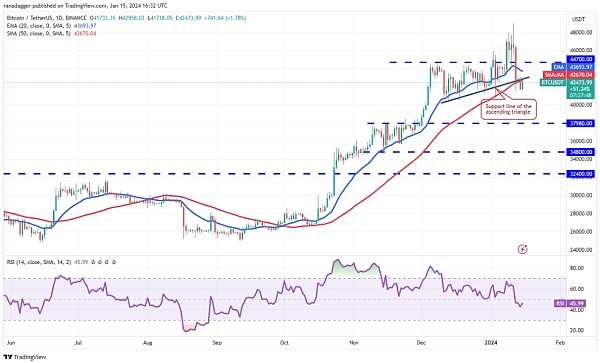 与这一假设相反,如果买家突破44700美元的关口,则表明比特币修正阶段可能已经结束。然后,比特币将尝试达到50000美元的重要心理水平。