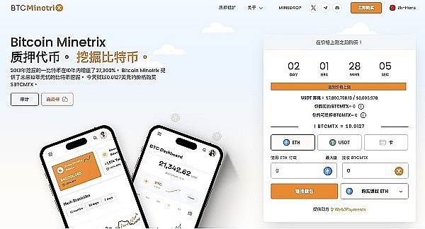 其中一个吸引早期投资者注意力的项目是Bitcoin Minetrix(BTCMTX),它旨在通过一种新颖的 Stake-to-Mine 机制使所有人的比特币挖矿普及化,通过质押BTCMTX代币,用户可以赚取比特币挖矿积分,以获得直接挖矿时间或挖矿收入的份额。