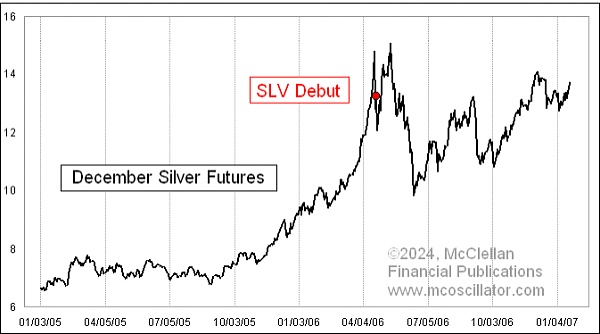2006 年 4 月白银 ETF SLV 的首次上市也是类似的情况。