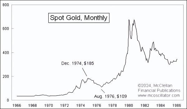当世界其他国家了解到这一信息后,他们认为美国人突然可以拥有黄金的潜在需求肯定是一个看涨因素。因此,他们试图提前满足这一需求,在1974年期间大举抬高金价。到1974年12月,黄金月收盘价已飙升至185美元,比尼克松任期 结束时的黄金可兑换性价格高出330%。