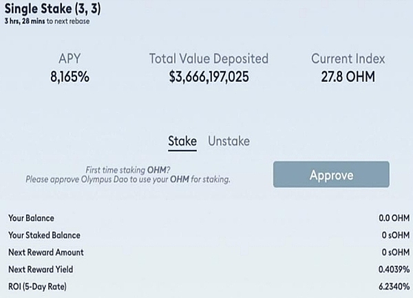 Olympus 协议是一个去中心化金融 (DeFi) 系统,原生代币 OHM ,以 4 美元的开盘 价开始 ,并迅速上涨到接近 1300 美元 ,总市值达到 43 亿美元。现在虽然 2 年多过去了, OHM 市值从 43 亿美元下降到 1.89 亿美元,OHM 的价格也下跌到 12 美元左右。Olympus