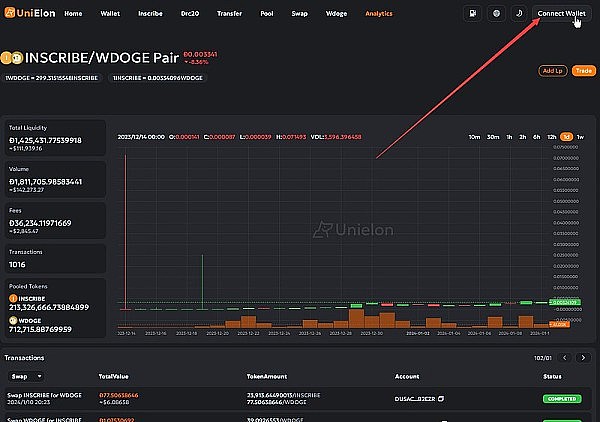 现在我们回到Unielon网站,再次点击右上角的连接钱包,弹出钱包确认窗口,点击Connect 确认连接,登录网站成功。