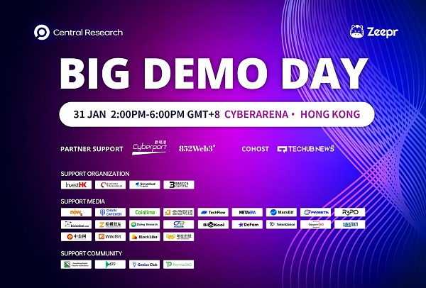 第十期Big Demo Day是由Central Research主办、 Techub News协办,数码港和852web3支持,Zeepr总冠名的大型线下活动。本次Big Demo Day活动汇聚了Web2和Web3行业的知名企业与专家,大部分是在香港市场深耕多年。