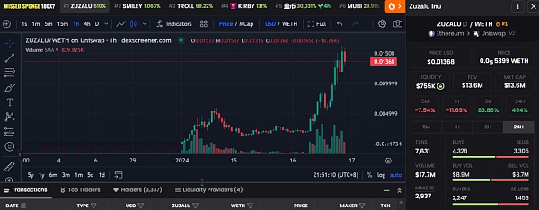 ZUZALU 在 Vitalik 的回应后迅速实现了疯狂的增长,仅在24小时内就猛涨近5倍。这一现象不仅凸显了 Vitalik 在加密市场中的巨大影响力,也展示了加密货币社区对行业领袖言论的高度敏感反应。一名交易者更是在Vitalik的推文后立即投资于 ZUZALU,短短三天内便获得了显著的投资回报。这个速度令人瞠目结舌,同时也再次证实了在加密领域,领袖的一言一行都可能引发市场的巨大波动。