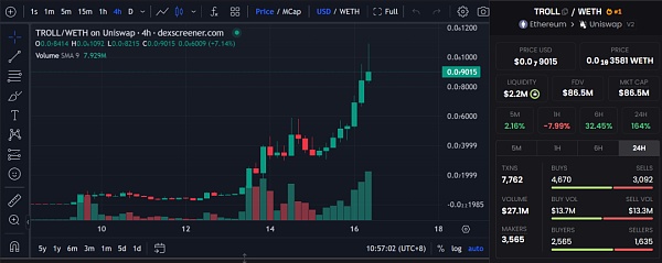 目前troll属于一级市场,流动性一般,上了头部交易所后,价格更稳定,流动性更好,上升趋势更容易,也更加容易被关注,所以说热门meme币上大所前都是价值洼地,有非常大的机会。