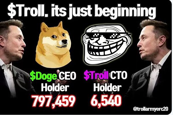 那么看troll的处境,目前24年也是在25年大牛市前夕,加上btc减半之后,整个市场的预期非常的好;troll和shib共同点有马斯克光环加持,诞生时机相似。