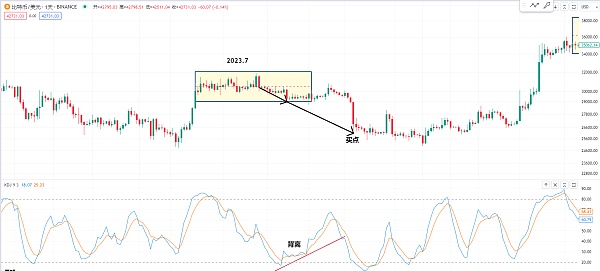 如果撑不住的话 那前面给大家分享的一个方法 就是在2023年的7月份 这边也是有一个箱体 我们可以观察一下他在破位的时候还有一个现象就是下方的KDJ是在背离 就是低点把前面的一些低点都给跌破 然后这个指标他是有背离的位置有可能很重要的买点