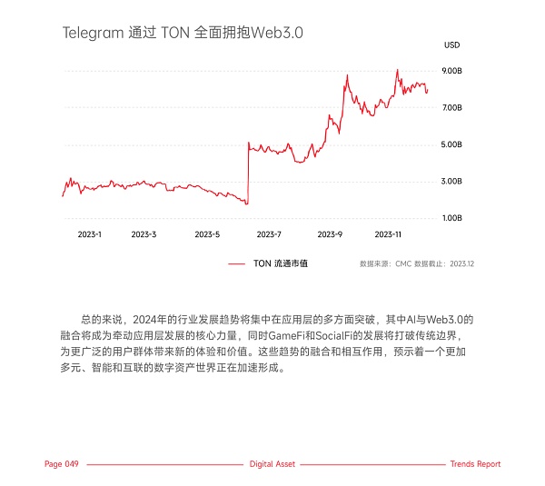 总的来说,2024年的行业发展趋势将集中在应用层的多方面突破,其中AI与Web3.0的融合将成为牵动应用层发展的核心力量,同时GameFi和SocialFi的发展将打破传统边界,为更广泛的用户群体带来新的体验和价值。这些趋势的融合和相互作用,预示着一个更加多元、智能和互联的数字资产世界正在加速形成。