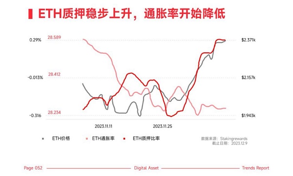 当前,以太坊作为市场上的主导力量,其质押数量的稳步上升和通胀率的逐步降低,表明了其网络的成熟度和市场的认可度。但以太坊并非唯一的玩家,其他Layer1区块链如Solana也在竞争中寻找自己的位置。