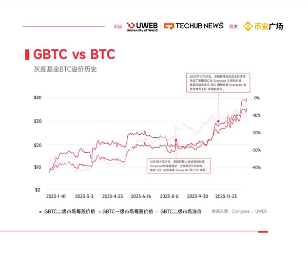 万美元)计算总值仅为40亿美金。这就代表着其他ETF的市场规模目前并不算大,市场对于这类新型金融工具的接纳需要时间。从以往类似金融产品的市场接受过程来看,虽然基础已经打好,爆发增长仍需时日。因此在2024年,我们期待见证比特币ETF如何逐步推动市场成熟,并带动整个数字资产行业迈向新的里程碑。