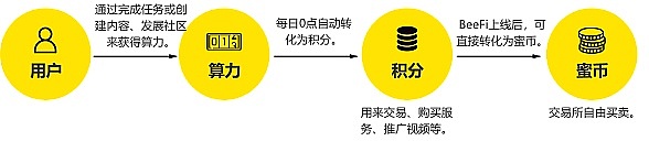 蜜币是BeeFi平台基于区块链发行的生态代币,用于BeeFi社区的所有打赏或消费等行为,是为BeeFi流通货币。在开通二级市场之前,蜜币将以积分形式发放,用户可通过完成每日任务获得算力产出,或者是通过短视频内容制作、直播获得打赏、赠送、蜜聊陪聊、蜜见线下陪玩等形式获得算力奖励。同时,也可以通过积分形式进行购物、打赏等,彻底打破传统社交平台垄断收益权利,将权益给到每一位创作者及对社区发展有助益的用户。