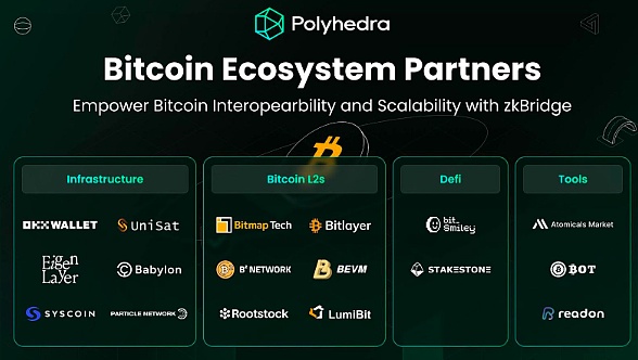 Polyhedra Network 已经与比特币生态系统内的关键建设者进行合作,其中涵盖了基础设施、钱包、比特币二层、DeFi 和工具。