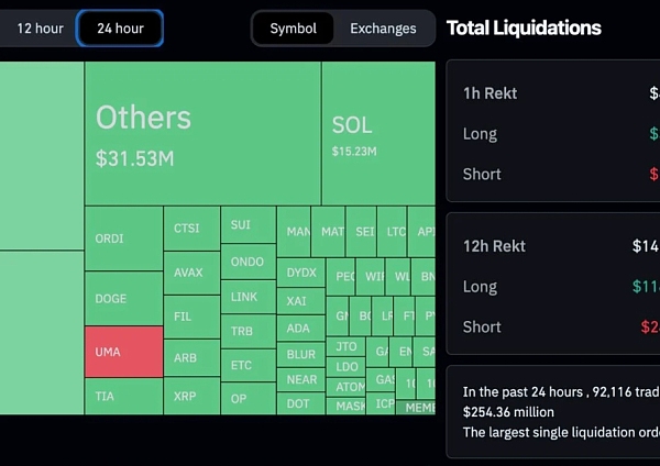Coinglass数据显示,过去24小时,加密货币全网爆仓金额超过2.5亿美元,爆仓人数超9.2万人。遭清算币种中,比特币以7457万美元占据第一,以太币以6494万美元位居第二。
