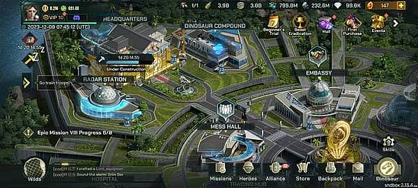 每个玩家在恐龙时代都有一个总部,里面有各种建筑物。玩家需要一定的时间和资源来升级建筑物,以提高他们的效率。