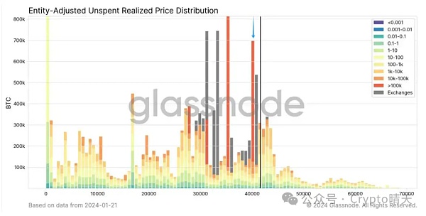 首先,从链上数据来看,巨鲸在35000—40000区间,买入了大量筹码,这一带是巨鲸的成本密集区。