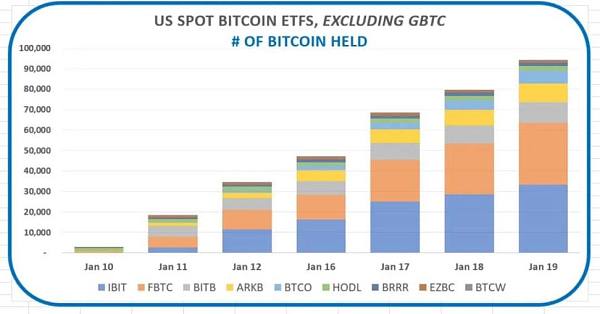 根据 CC15Capital 公布的最新数据显示,在比特币 ETF 推出后的短短 6 个交易日内,9 只新的现货比特币 ETF 已经买入约 9.5 万个 BTC,价值 39 亿美元。其中不包括 GBTC。另据彭博社 ETF 分析师 James Seyffart 在社交媒体上表示,在前 7 个交易日的总成交量略低于 190 亿美元。
