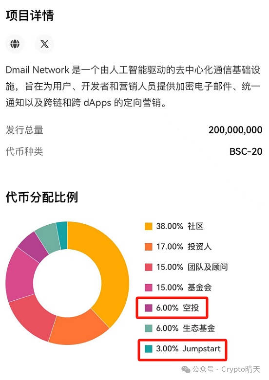 不过好在后来,OKX发声明表示,会全额赔付,还是挺有格局的,说到OKX,今天OKX新一期打新Dmail,很多人刷交互都用过,空投应该给花钱的短域名用户多点。总量2亿,空投6%,有交互过的可以看看。