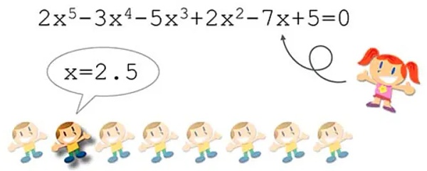 假设某个学校的一个班里,只有一个女生叫小红,其他都是男生。每个男生都想约小红看电影,但是,能实现愿望的只能有一个男生。到底选哪个男生呢?本着公平原则,小红需要考察每个男生的诚意,考察的方法是,出一道数学题,比如说解方程,谁第一个解出这个方程,谁就有资格陪小红看电影。因为解高次方程没有固定的公式,需要进行大量的计算,才能算出正确的结果,这个计算过程就需要一定的工作量。假设小明率先计算出了结果x=2.5,小红可以简单地验证这个结果是否正确。