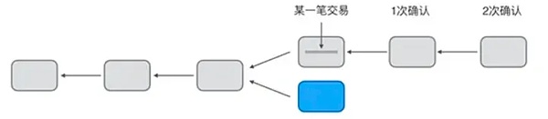 由于区块链虽然最终会保持数据一致,但是,一个交易可能被打包到一个后续被孤立的区块中。所以,要确认一个交易被永久记录到区块链中,需要对交易进行确认。如果后续的区块被追加到区块链上,实际上就会对原有的交易进行确认,因为链越长,修改的难度越大。一般来说,经过6个区块确认的交易几乎是不可能被修改的。