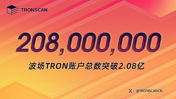 波场TRON账户总数突破2.08亿