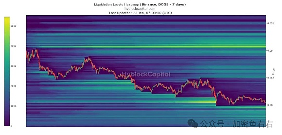 狗狗币的清算热图也呈现出许多引人注目的特征。meme币的主要支撑位位于0.079美元左右。