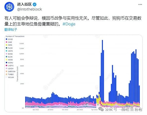 IntoTheBlock最近发布了一条推文,强调与SHIB等其他几种顶级加密货币相比,狗狗币的交易数量仍然相对较高。
