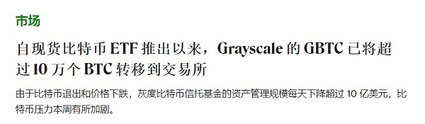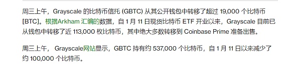 我们来看一下coindesk上面的一则数据统计 灰度自美国比特币现货ETF上市以来 他是转出了超过10万枚的比特币 最近是一直在卖 而且我们可以看一下下面的统计 自比特币现货ETF在美国登录以来 灰度是转出了11.3万枚的比特币 全网都知道是转到了coinbase 而且现在目前还持有53万枚比特币