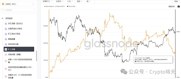 矿工持币量已经跌至21年8月以来的低点了。前面一直在说GBTC在卖,其实1月10日现货ETF通过后,矿工也是一直在背后悄悄砸盘挖提卖的人,挖矿成本32000美元以内,40000美元的大饼还有25%以上的利润空间。比特币二层生态发展迅速,未来铭文市场再度火热,那么矿工的额外收入就更多了,抛压也会加大。