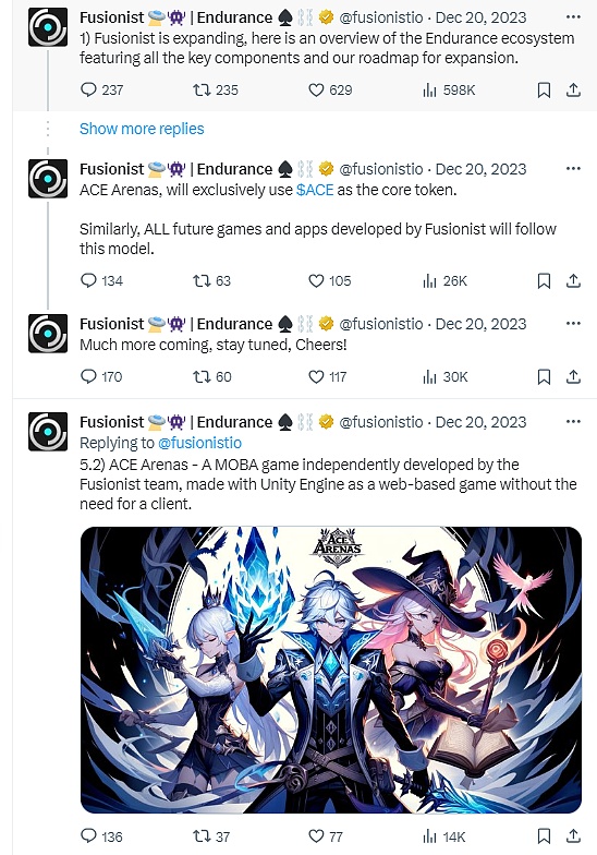 4.加上最近ACE出来了一个利好新游戏上线,隆重推出 ACE Arena,这是 Fusionist 团队的最新创新!