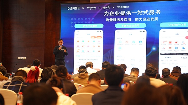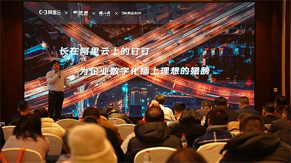 典名科技作为阿里云创业者计划的合作机构也在会议现场做出分享,高级架构师刘恒介绍了企业如何利用阿里云技术和钉钉平台实现全链路的数字化转型。